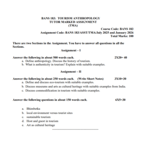 BANS-183 : Tourism Anthropology in English Solved Assignment 2025-2026