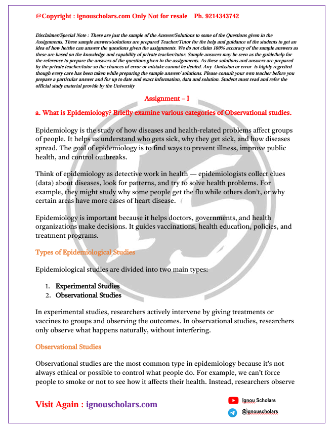 Title : BANS – 184 : Public Health and Epidemiology in English Solved Assignment 2025-26