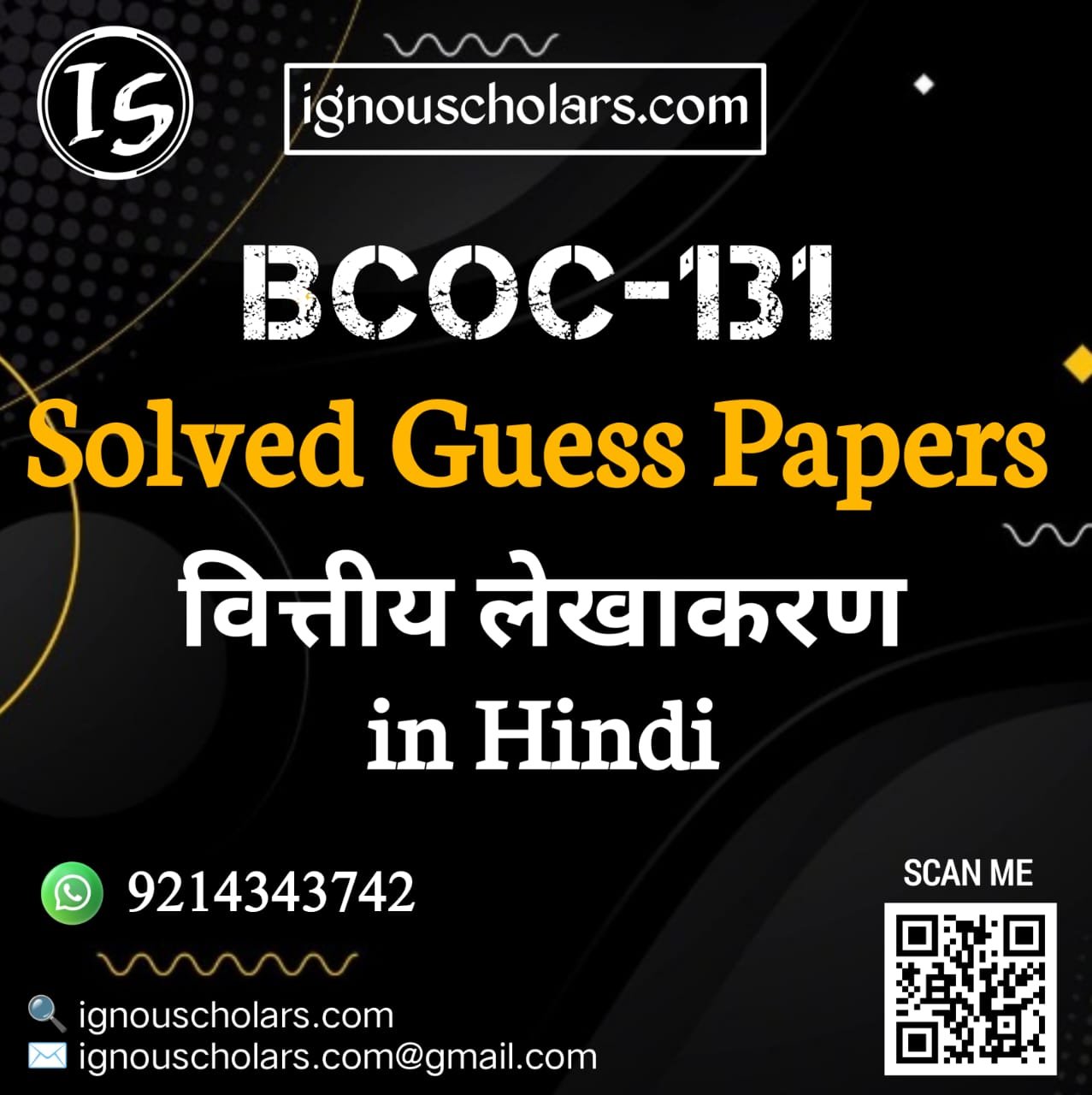 Title : BCOC 131 : वित्तीय लेखाकरण in Hindi Solved Guess Paper December 2025 Exam
