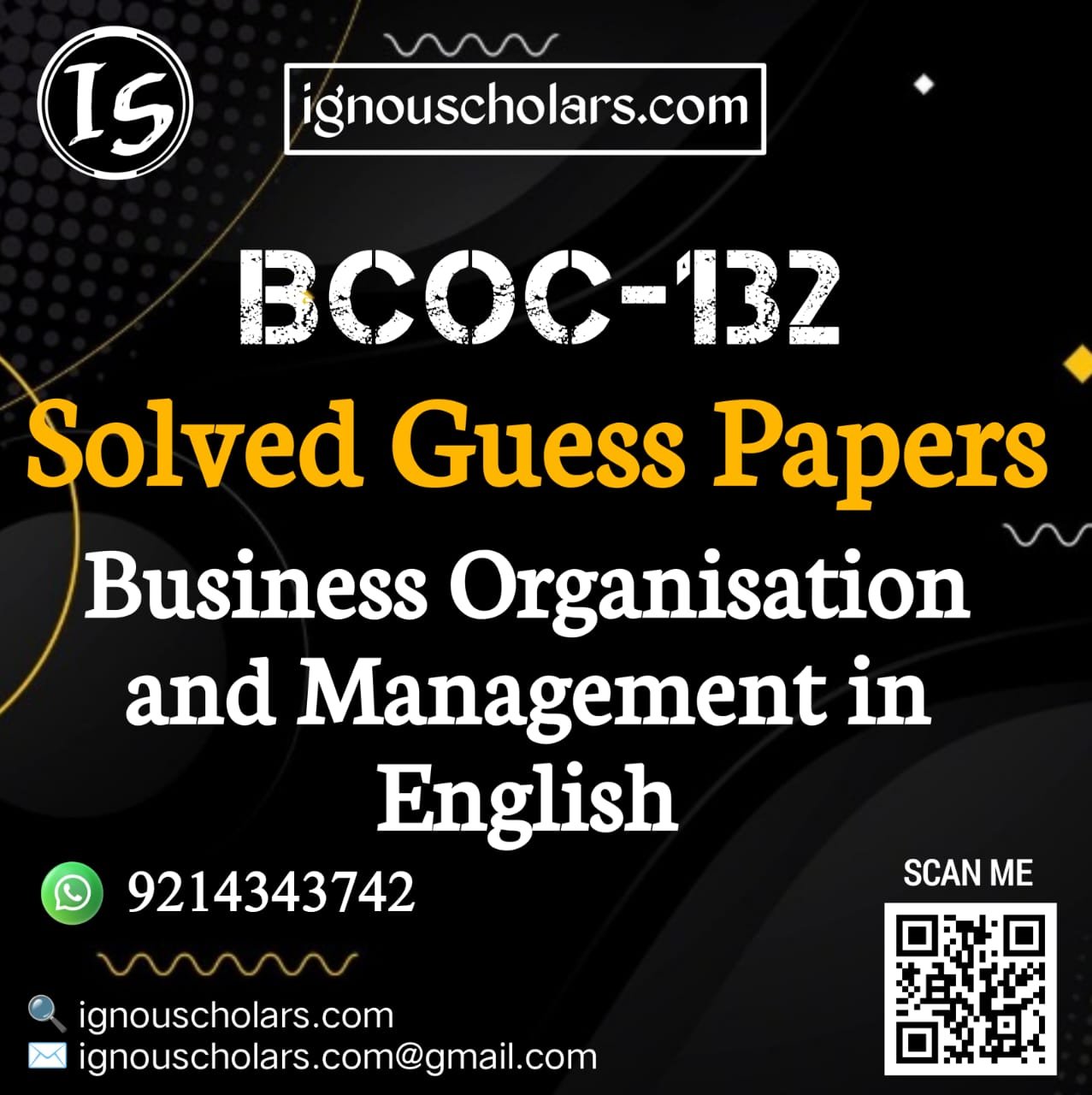 Title : BCOC 132 : Business Organisation and Management in English Solved Guess Paper December Exam