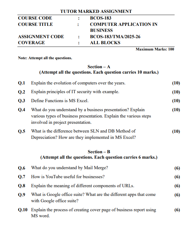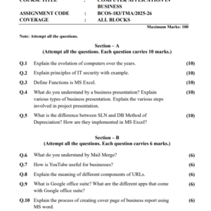 Title : BCOS 183 : Computer Application in Business in English Solved Assignment 2025-26