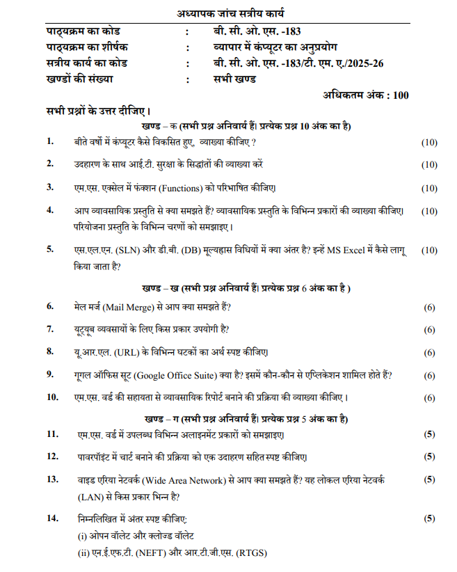 Title : BCOS 183 : व्यापर में कम्प्यूटर का अनुप्रयोग in Hindi Solved Assignment 2025-26
