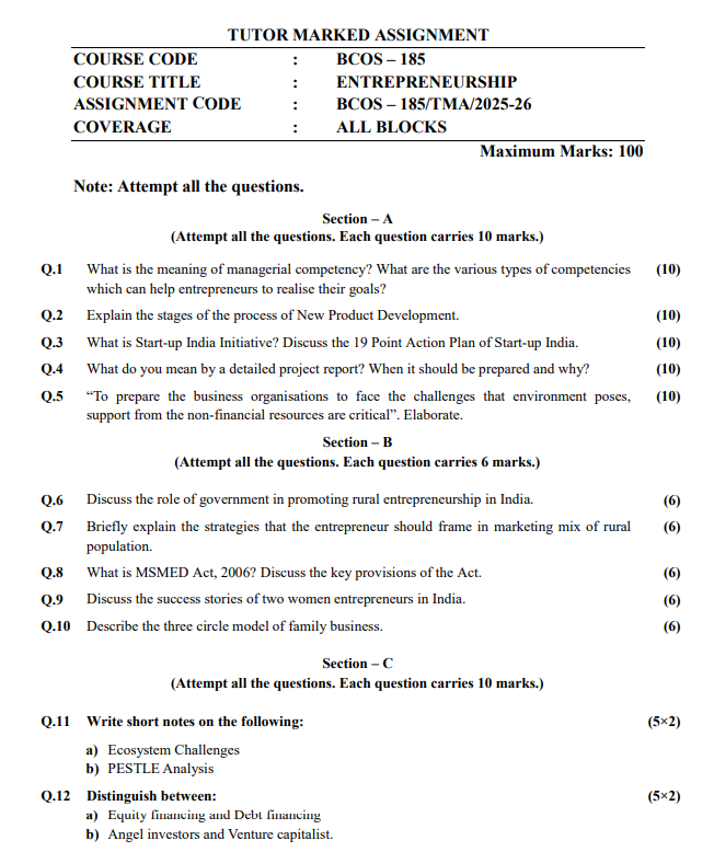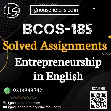 Title : BCOS 185 : Entrepreneurship in English Solved Assignment 2025-2026
