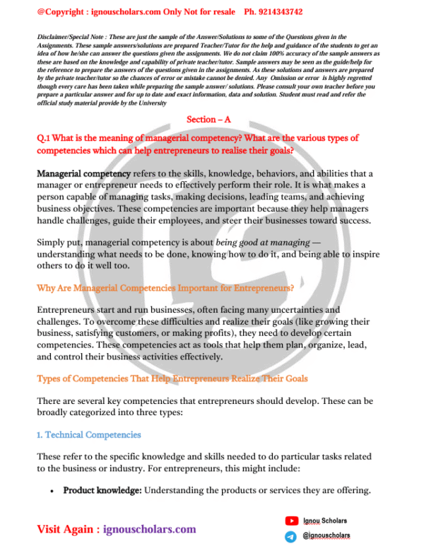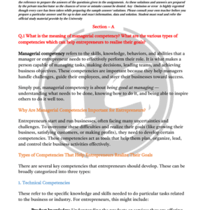Q.1 What is the meaning of managerial competency? What are the various types of competencies which can help entrepreneurs to realise their goals?