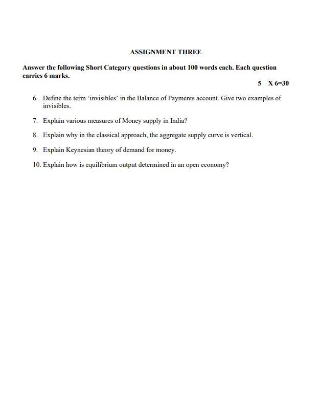 Title : BECC 133 : Principles of Macroeconomics-I Solved Assignment 2025-2026
