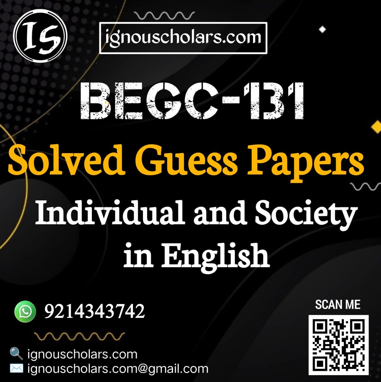Title : BEGC 131 : Individual and Society in English Solved Guess Paper December Exam