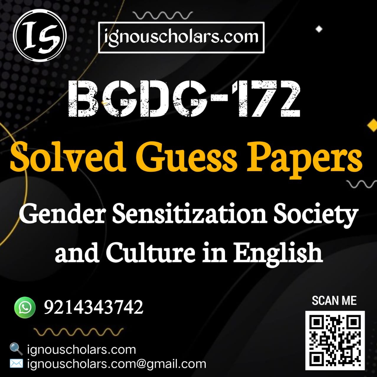 BGDG 172 : Gender Sensitization: Society and Culture Solved Guess Paper in English