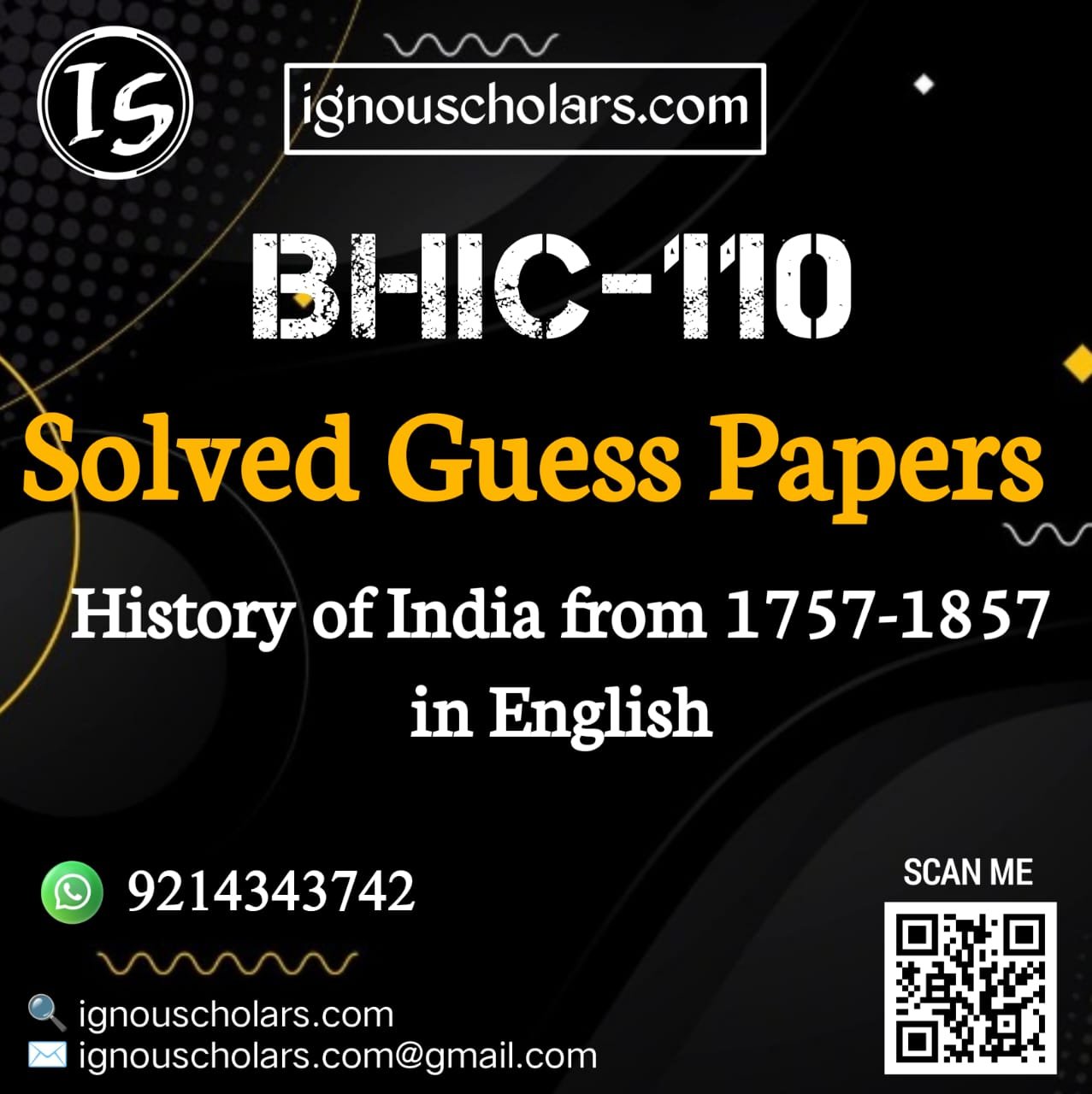 BHIC 110 : History of India From 1757-1857 Solved Guess Paper in English