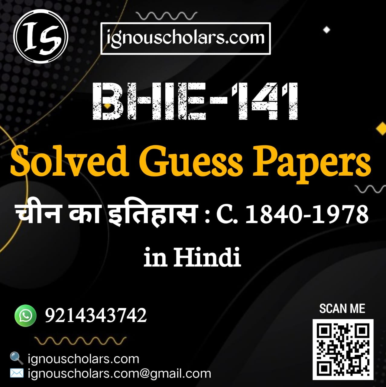 BHIE 141 : चीन का इतिहास ई. 1840-1978 in Hindi Solved Guess Paper 2025