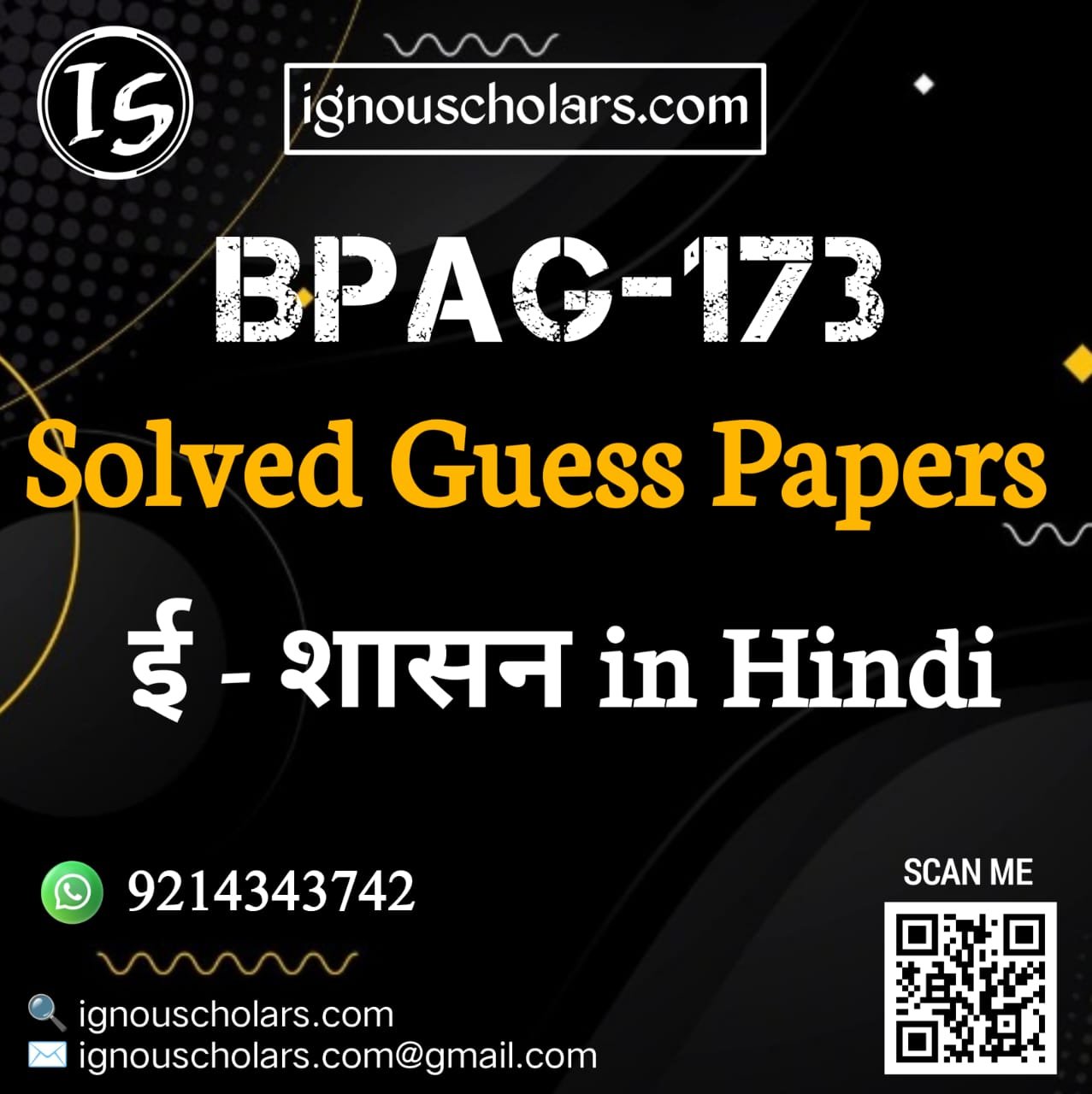 Title : BPAG 173 : ई-शासन in Hindi Solved Guess Paper December Exam